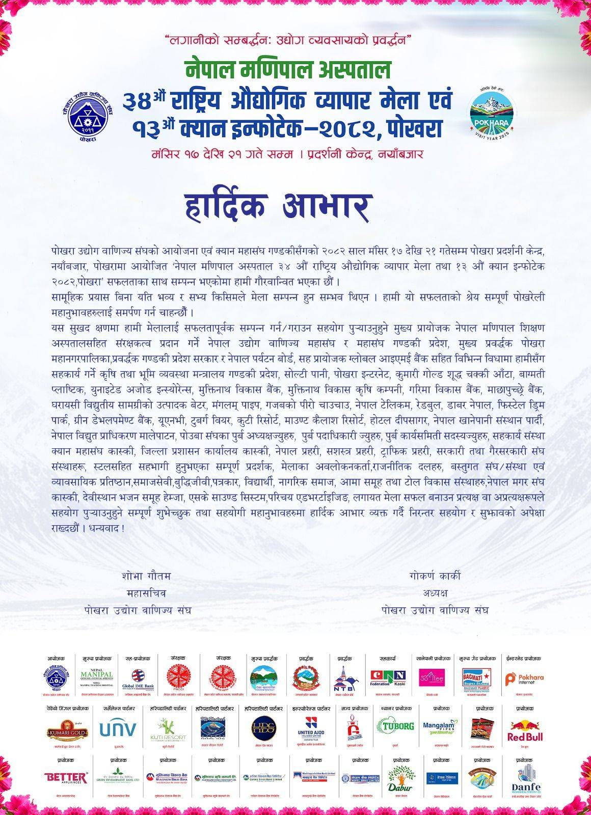 हार्दिक आभार News Coverage December 8, 2025 PCCI PKR SearchSearchRecent Postsसुचना हार्दिक आभार मेला २०८२ पहिलो दिन कोटेशन सम्बन्धी सुचना नयाँबजारमा औद्योगिक व्यापार मेला सुरु नेपालमा केही नहुने हैन हुन्छ : महासंघ अध्यक्ष ढकाल Donate Us