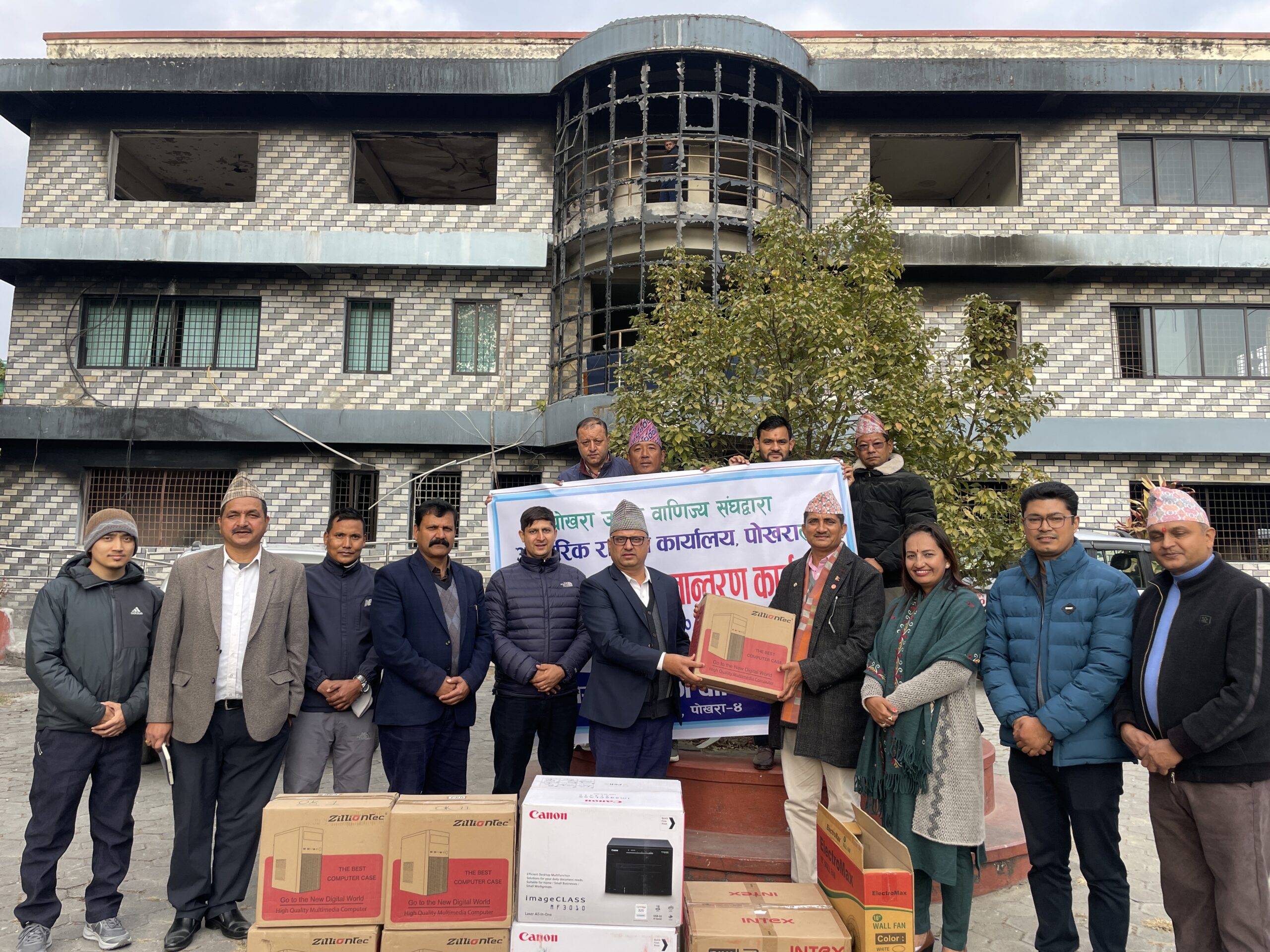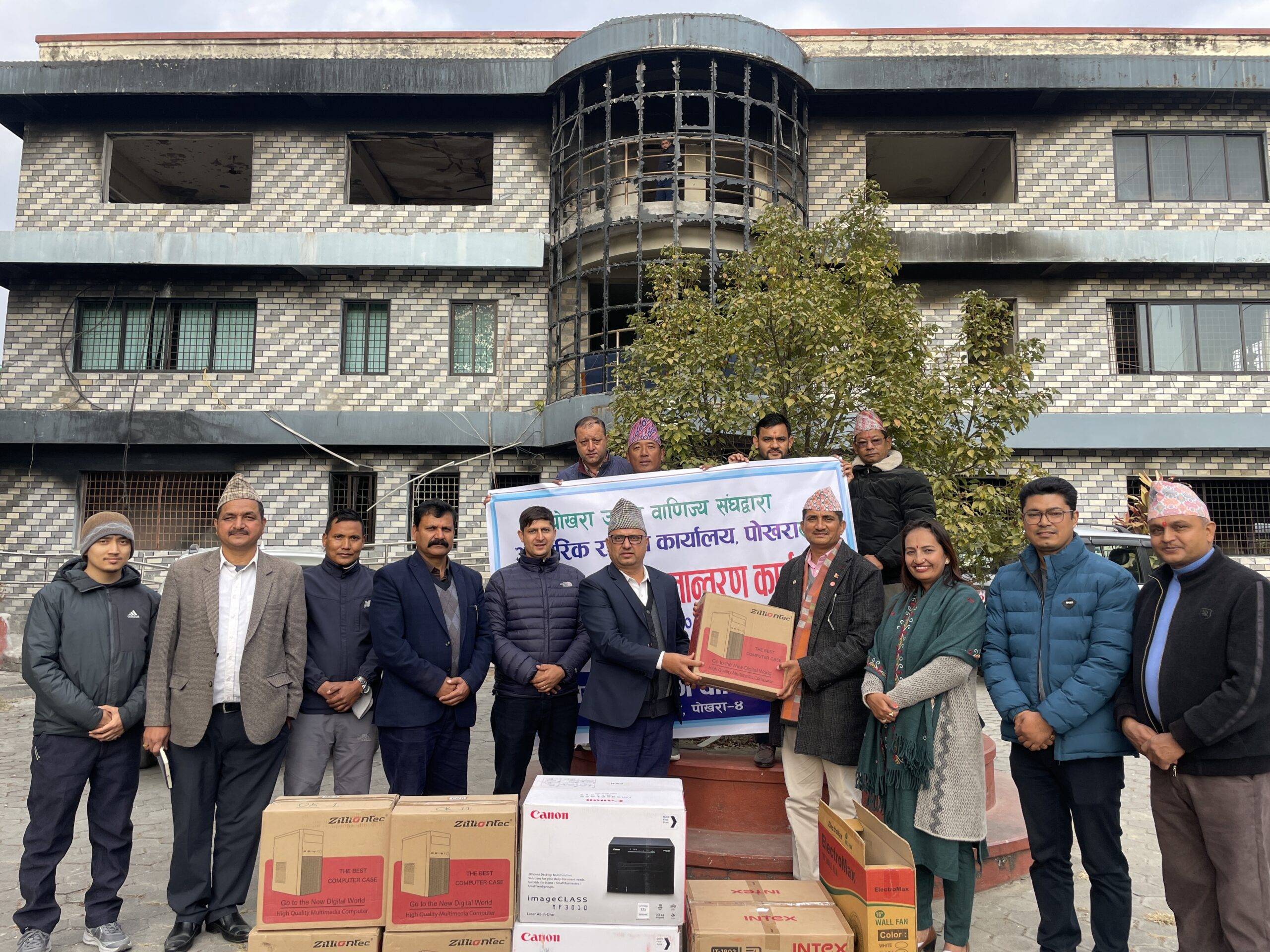 पोखरा उद्योग वाणिज्य संघका अध्यक्ष गोकर्ण कार्कीले आइततबार उद्योगतर्फका उपाध्यक्ष दीनेशचन्द्र बास्तोला,वाणिज्यतर्फका उपाध्यक्ष बलराम आचार्य, महासचिव शोभा गौतम,उपमहासचिव सुदीप प्रधानाङ्ग,कार्यसमितिका सदस्यहरु जीवन श्रेष्ठ,दूधमान गुरुङ‘आशिष’ तथा संघका सहायक निर्देशक सुनिल क्षेत्रीको उपस्थितिमा आन्तरिक राजश्व कार्यालय पोखराका प्रमुख कर अधिकृत शिवप्रसाद ढुंगानालाई ५ लाख ३१ हजार ८ सय ७१ रुपैयाँ बराबरका सामग्री हस्तान्तरण गरेका हुन् । अध्यक्ष कार्कीले ती सामग्री सहयोगपछि आन्तरिक राजश्व कार्यालयबाट प्रवाह हुने सेवामा सहजता आउने विश्वास व्यक्त गरे ।